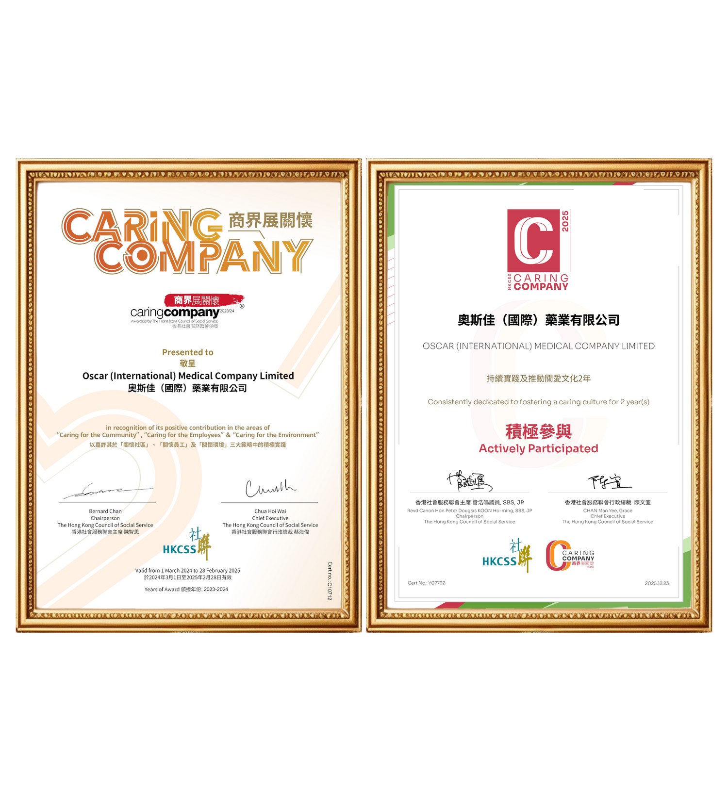本公司更榮獲「商界展關懷」獎項。這展示了本公司積極實踐關懷社區、關懷員工、關懷環境。